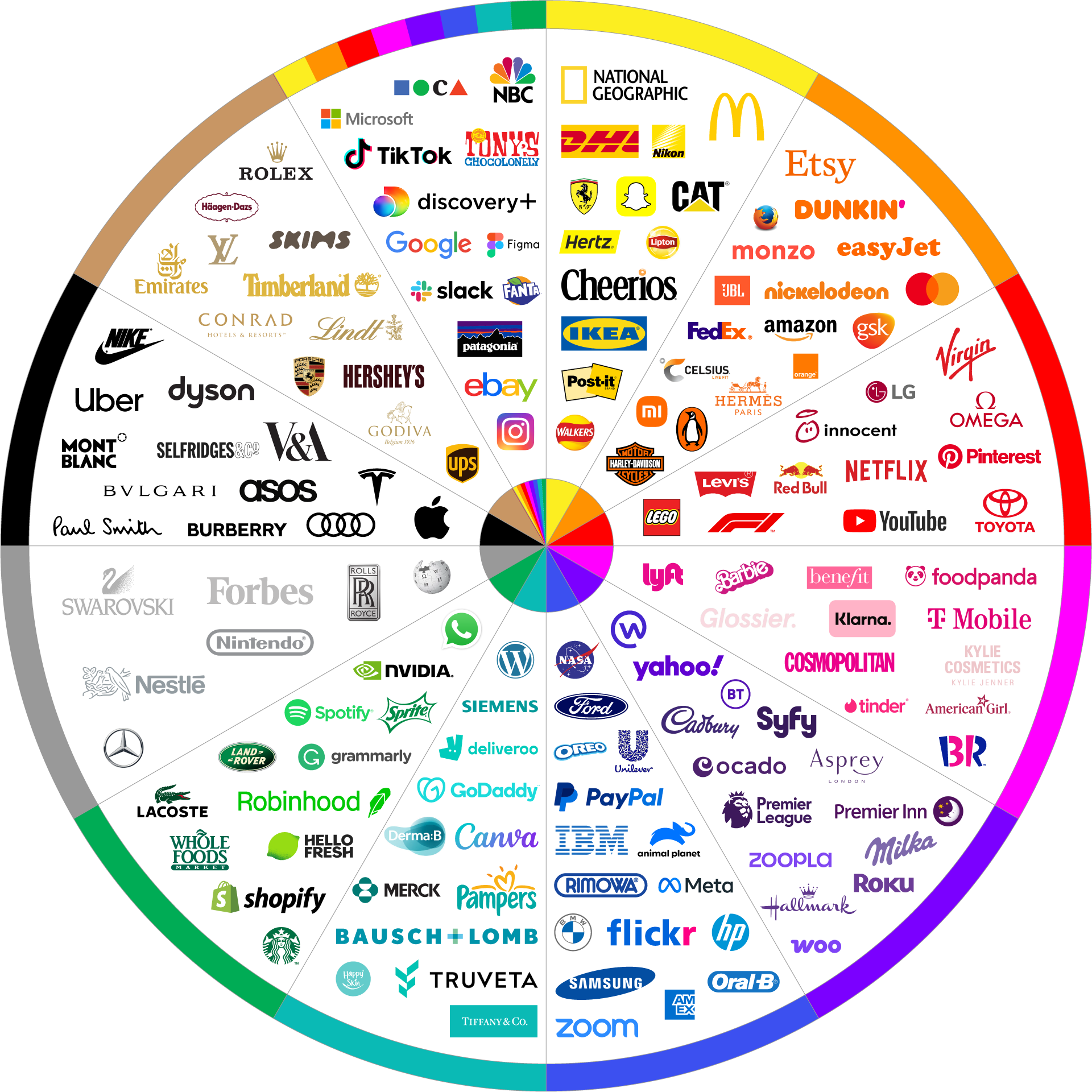 These use distinctive visual elements without the need for text. This is a common attribute used by the world’s largest companies. Think Apple, Mastercard, F1.